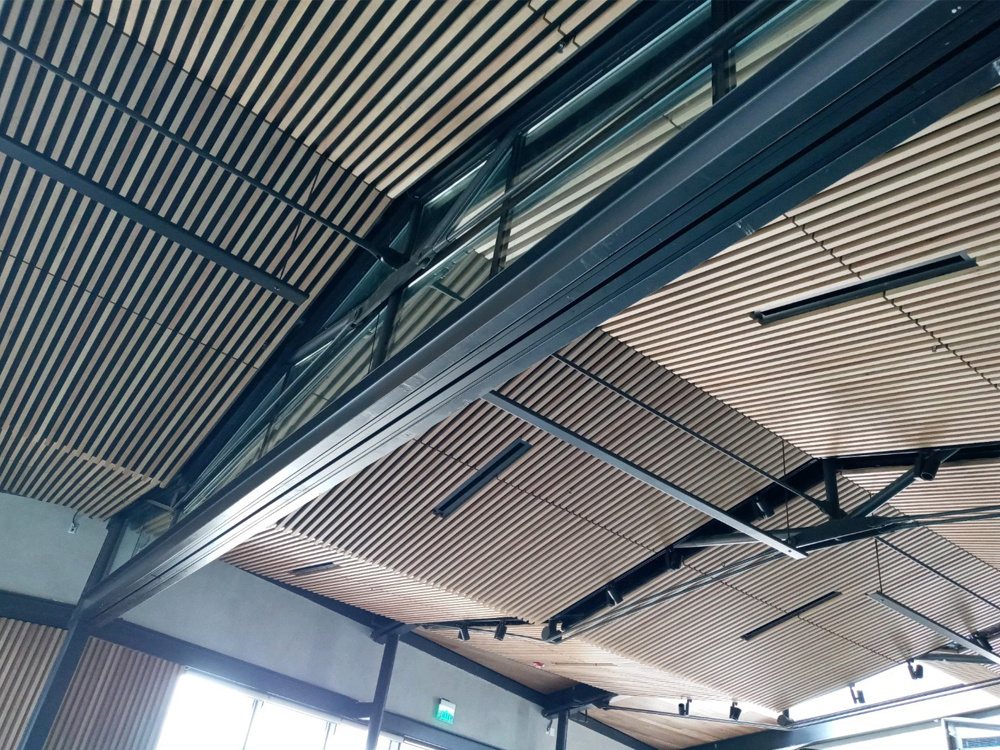 The Holdsworth Center is a well-known facility where educators meet to learn advanced teaching techniques, individually and in groups. Acoustics, privacy and a comfortable aesthetically pleasing environment is required. The single panel 841 steel panel face in the serving area was factory custom prepared to allow for the field installation of vertical wood brightwork pieces by the millwork craftsmen thus creating a visual focal point for the area. Necessary acoustic qualities were maintained. Acoustic Crystal Glass 242 systems were used to divide classrooms & maintain the desired “openness” of the teaching area. If custom finishes and acoustic glass wall systems are part of your requirements contact Moderco (1.800.363.3150) or RPC.